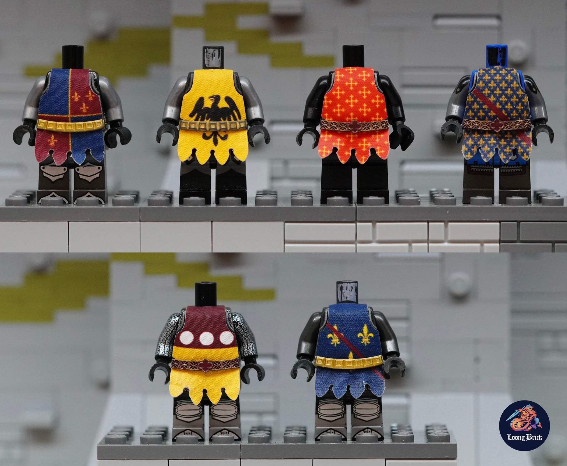 Please note that minifigure in picture is not included. Please note that these Tabard are a bit difficult to install for their shape, We suggest that you first learn to install tabard in Plate Armor with Tabard (3) or Plate Armor with Tabard (2).